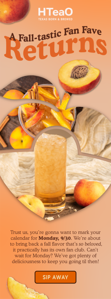 Bringing to life the vibrant identity of HTeaO—a premium iced tea brand known for its high-quality, refreshing beverages—a series of interactive e-blasts was created, featuring seamless motion design to communicate the brand’s fun and energetic personality.